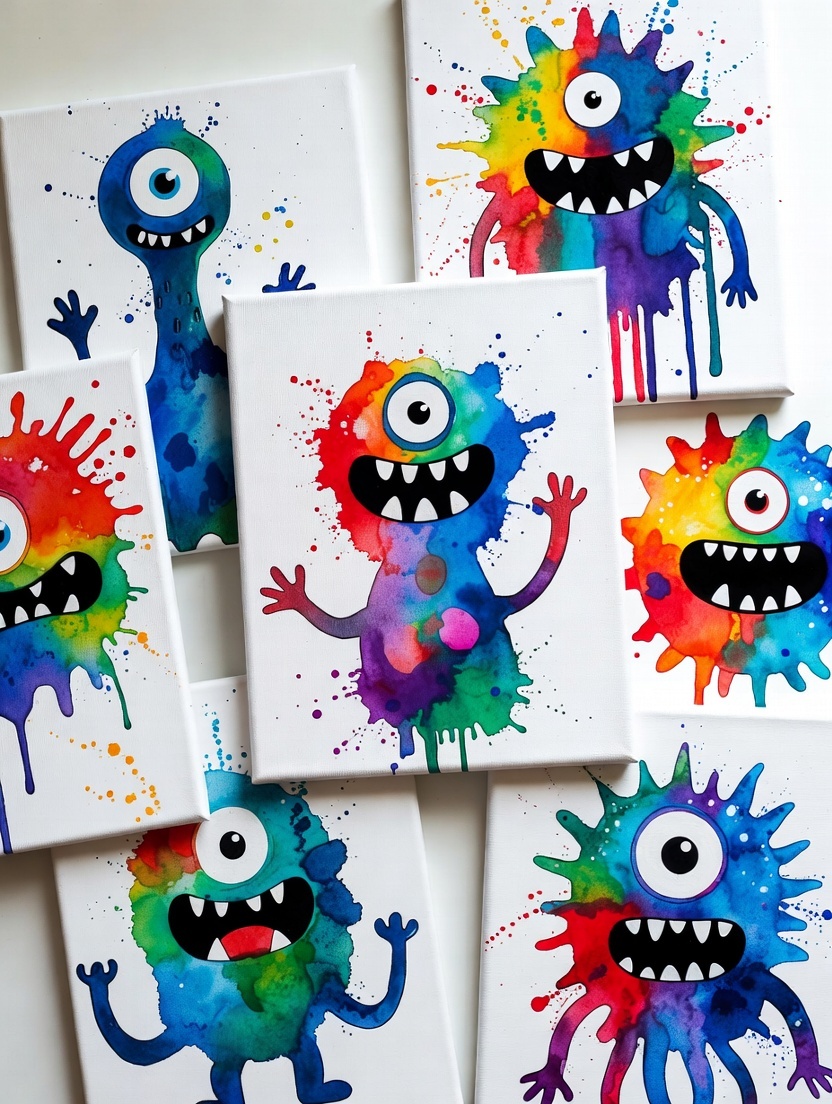 – Guided Monster Painting: Create a unique, goofy, or scary monster on an 8×10 canvas. Our friendly East Coast Art Party artist will lead you through step-by-step instructions using watered-down acrylic paints and fun splatter techniques.